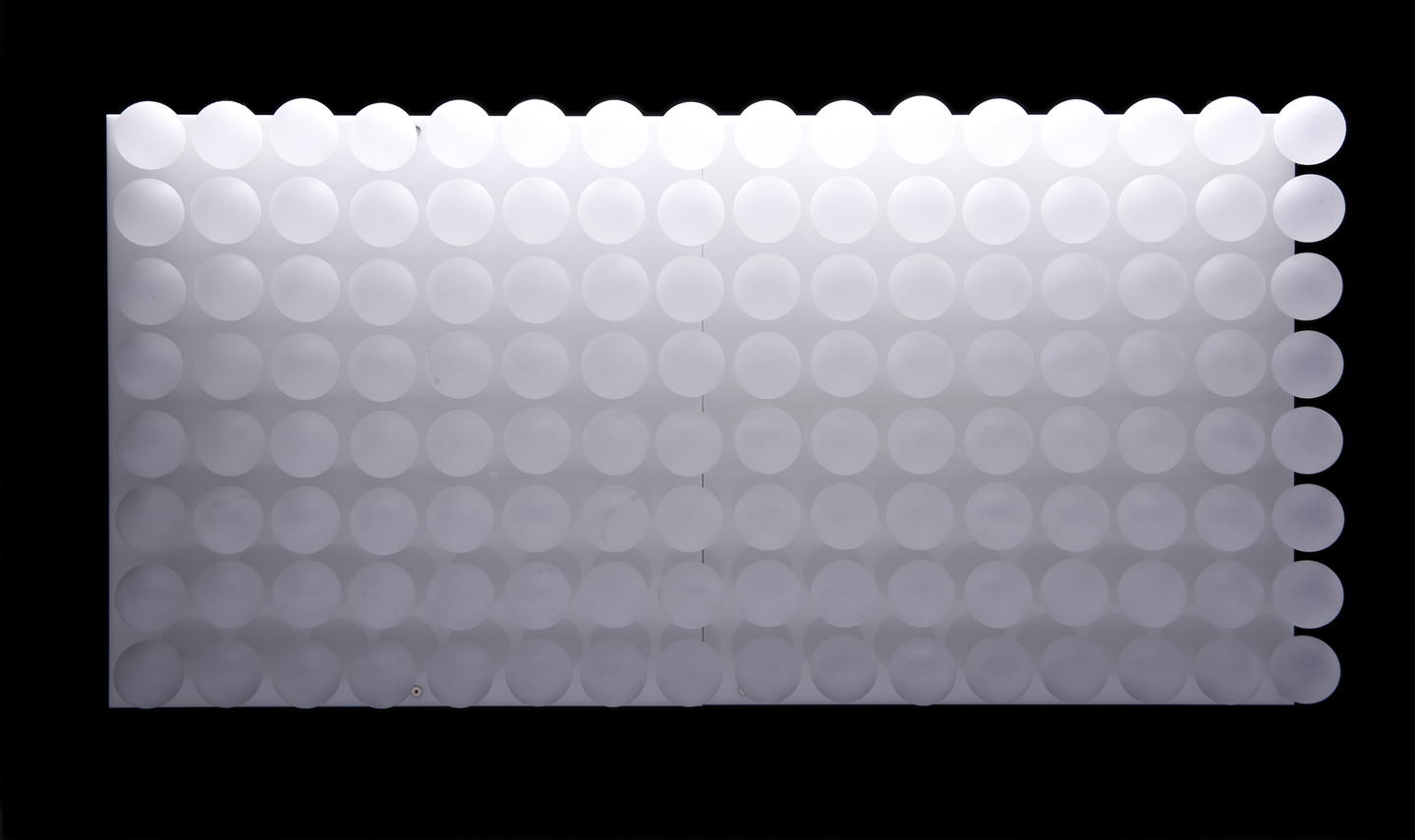 The array is driven by custom software that converts greyscale video to physical motion, where each pixel drives one of the rods (black pixels move the rod in, white move the rod out).